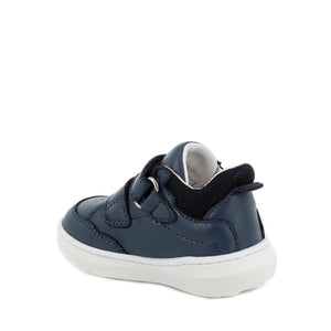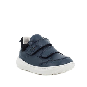 A smart casual little boys shoe from Primigi perfect for wearing with jeans or chinos. Crafted from navy leather with perforated details to the vamp increasing air flow. Finished with a navy heel cap and a white sole. Fastened by two adjustable velcro straps and lined in soft textile with a comfortable leather footbed.