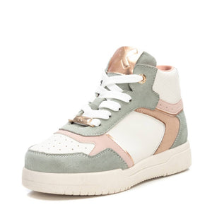 The girls trainer from XTI comes in green, white, pink and gold. Featuring a platform sole to elevate her look. Fastened with white laces and a secure zip on the side. Finished with a padded collar and removable insoles.