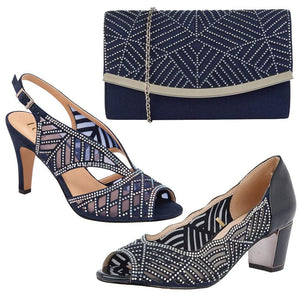 Immy from Lotus is a glittering navy peep toe heel perfect for all those special occasions. Finished with a block heel and a mesh diamante adorned vamp. Complete with a cushioned synthetic footbed and a comfortable heel height of 55mm. Perfectly paired with Nara to complete your look.