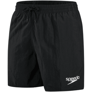 The Essentials 16” Watershort from Speedo is a classic swim short in a lightweight and comfortable fabric with a semi-elasticated waistband with external drawstrings for a secure and adjustable fit.  Featuring 2 side pockets, a back pocket with drainage system and a mesh inner lining.  Finished in black with Speedo logo printed on the bottom in white.