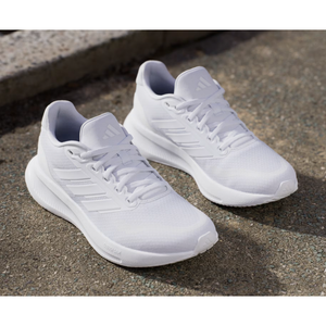 A sleek and stylish running trainer for her from Adidas. The Runfalcon 5 are engineered to suit short distances and road running. Featuring a mesh upper for breathability and a Cloudfoam midsole for ultimate comfort as you pick up the pace. Lace fastening. White throughout and finished with Adidas branding.