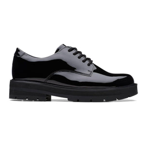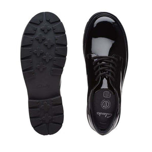 Clarks Youth Girls Prague Lace Shoe Black Patent