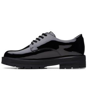 The Prague Lace youth shoe is a girls school shoe in black patent from Clarks. Featuring black patent upper and sporting a chunky rubber sole that is durable. Fastened with laces for a secure fit and lined with a comfortable foam textile footbed. These are the perfect youth school shoes!