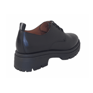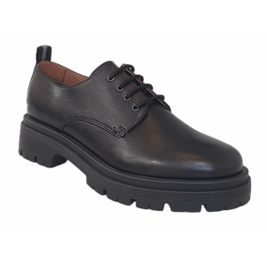 Rock the chunky vibe with these ladies shoes from Dubarry in smooth black leather featuring lace up fastening for a secure fitting. Kanna would be suitable for school shoe use or work. Lined in a mix of smooth leather and textile with a comfortable leather footbed. The chunky cleated sole unit has a height of 40mm giving you that extra edge.