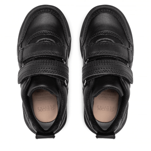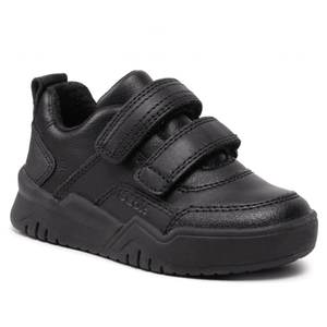 J Perth is a comfortable and durable boys school shoe from Geox in smooth black leather uppers in a sneaker design with reinforced toe and heel for protections during the school year from bumps and scratches. Fastened by two velcro straps for handy access and comfort is ensured by the soft textile lining. Featuring a breathable, antibacterial and antishock footbed and complete with a zero mark sole unit.