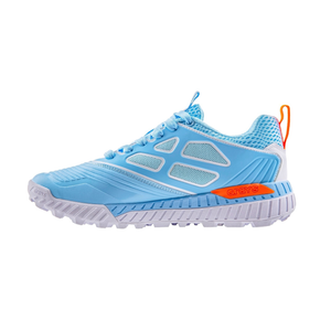 The Blitz Shoe is a performance hockey shoe in a durable style from Grays. In engineered breathable mesh textile uppers in sky blue with synthetic overlays increasing stability in blue and flashes of orange and white for a pop of colour. There is a AGS toe wrap protecting the entire forefoot from impacts and heel wrap technology which locks the foot in place. Featuring a EVA performance midsole for supreme energy return, an AGS outsole for superior grip on all surfaces and a removable memory foam footbed for comfort. Lined in textile with a padded ankle and heel and fastened by laces for a secure fit.