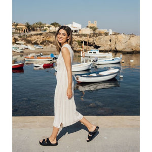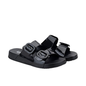 Get all the summer vibes with the ladies Igor sandals. Slide into absolute comfort with a padded sole, and a comfortable double strap. Fastened with two adjustable buckles. Finished in black with matching black  buckles.