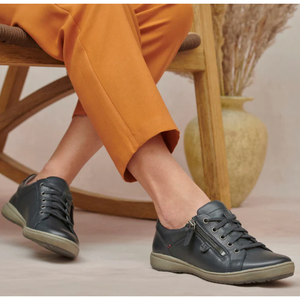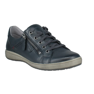 The Josef Seibel Caren 12 womens shoe blends sporty charm with everyday ease. Made with supple navy leather and featuring a cushioned insole, this sneaker is built for comfort that lasts from morning errands to evening strolls. The side zip adds a stylish touch and makes slipping in and out effortless, while the flexible sole ensures smooth steps wherever your day takes you.