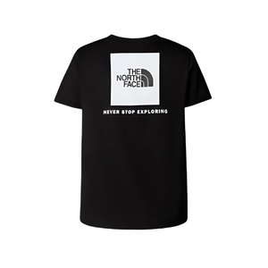 A round neck, short sleeve t-shirt for teen boys or girls from The North Face. This regular fitting t-shirt in black sports branding on the chest with a large The North Face Box logo on the back with ‘Never Stop Exploring’ printed underneath. This printed t-shirt will be a firm favourite in their collection - perfect for casual styling.