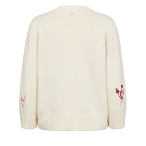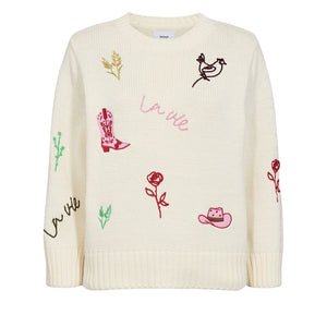 Layer up on the colder days with the new Wally Pullover knitted sweater from Numph. Crafted in a soft knit in cream, with colourful designs scattered. Featuring a round neck and ribbing to the hem and cuffs. Its sure to turn heads!