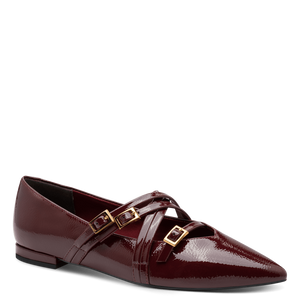 A classic ballerina style shoe from Tamaris to add to your collection. The red patent synthetic leather adds an elegant touch to your outfit. Fastened with adjustable buckle straps. Featuring a pointed toe and elevated with 10mm low heel. Designed with Antislide technology for a better grip, and padded insole with Touchit technology. Perfect to compliment your workwear outfit.