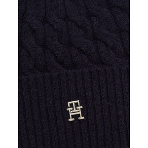 Tommy Hilfiger Womens Monogram Cable Knit Beanie Space Blue